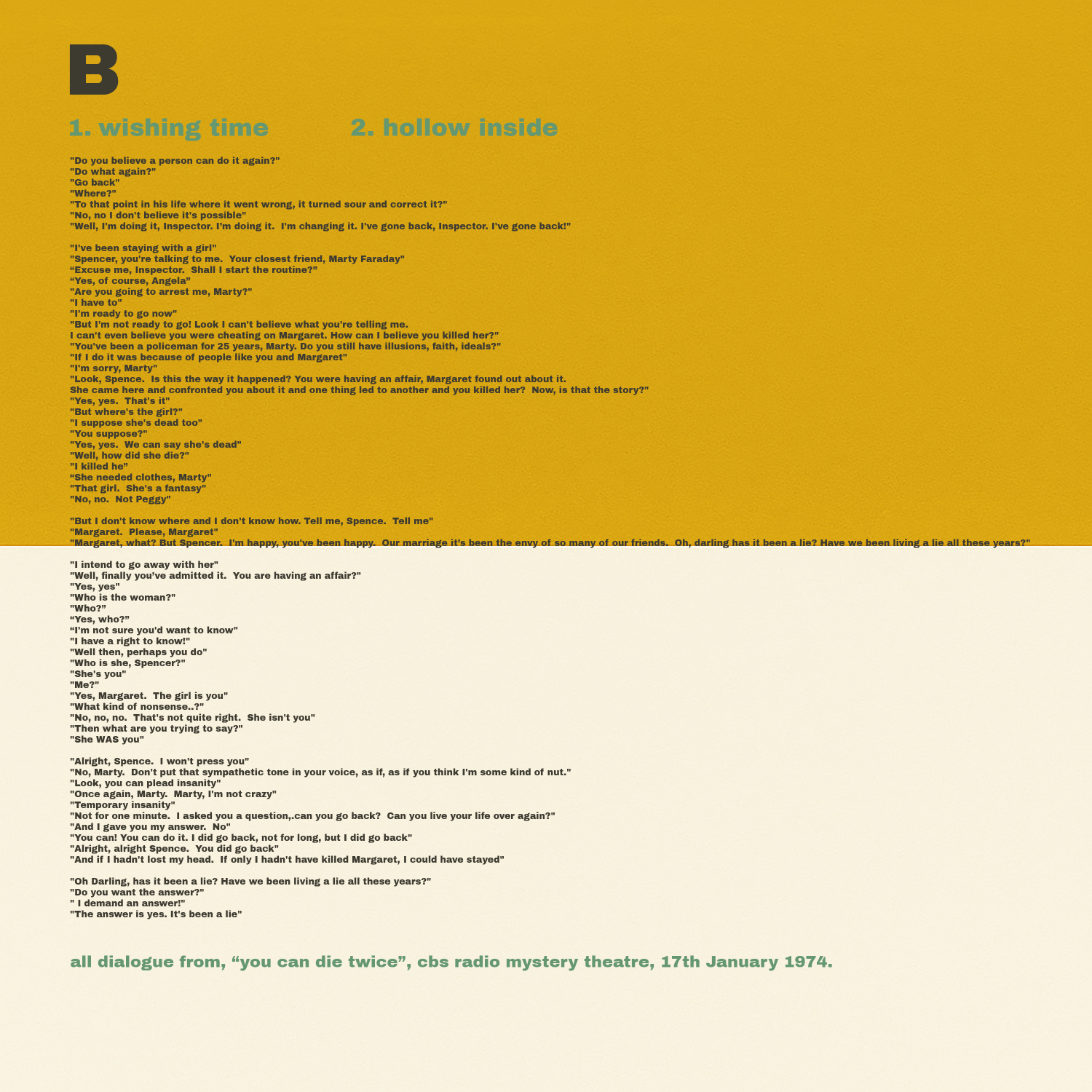 Four track EP recorded over a couple of months just as spring turned to summer. A couple of the tracks contain samples from a 1974 episode of the CBS Radio Mystery Theatre.