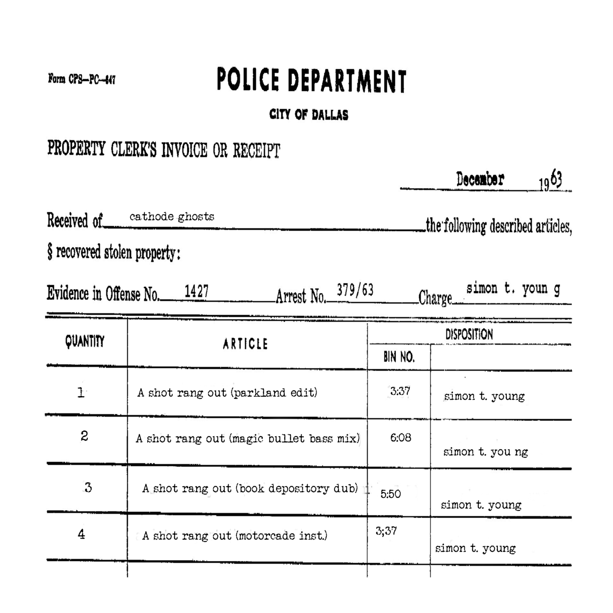 also remembered the track The Motorcade Sped On by Steinski and the Mass Media, which I loved.